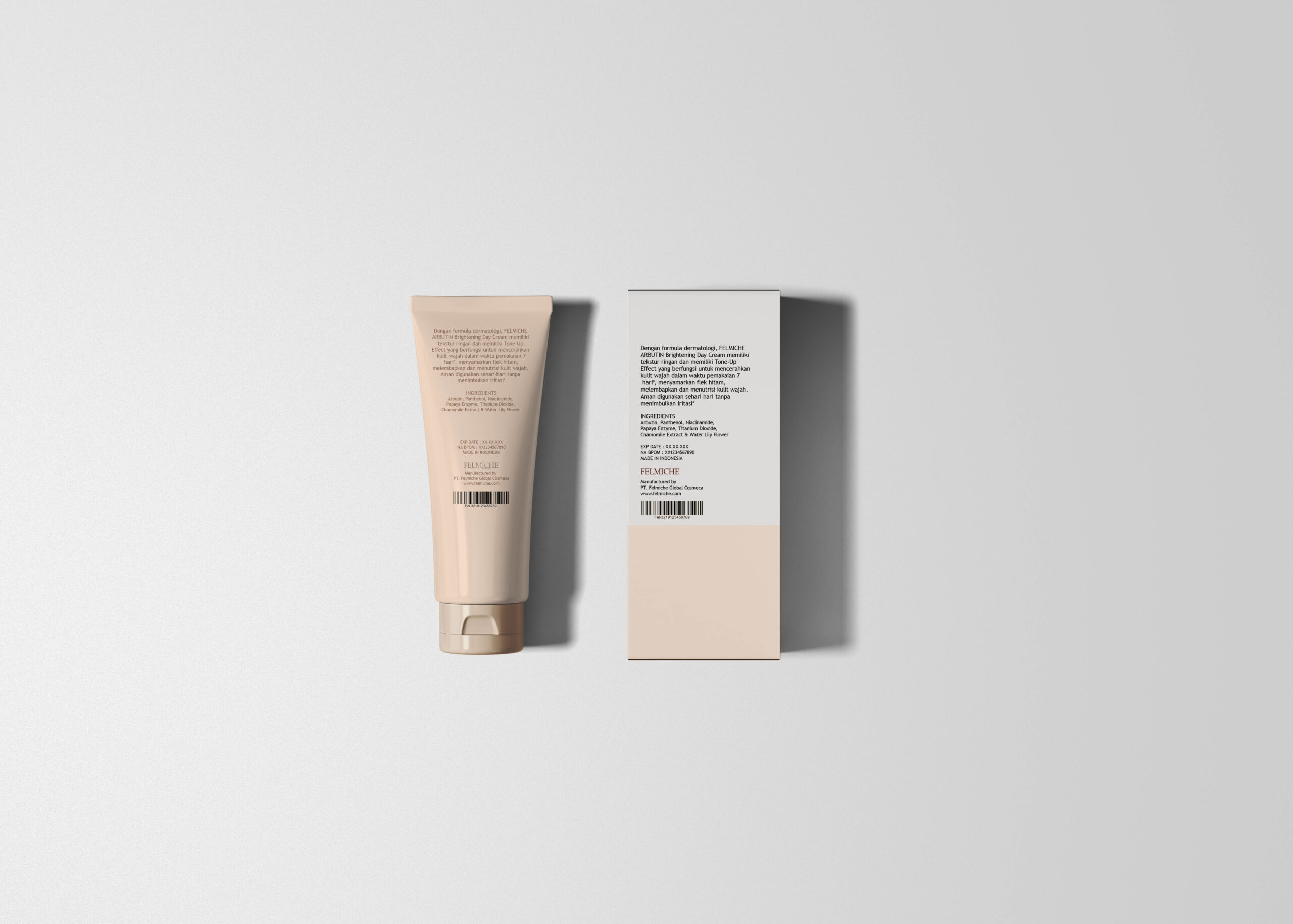Dengan formula dermatologi, FELMICHE ARBUTIN Brightening Day Cream memiliki tekstur ringan dan memiliki Tone-Up Effect yang berfungsi untuk mencerahkan kulit wajah dalam waktu pemakaian 7 hari*, menyamarkan flek hitam, melembapkan dan menutrisi kulit wajah. Aman digunakan sehari-hari tanpa menimbulkan iritasi*